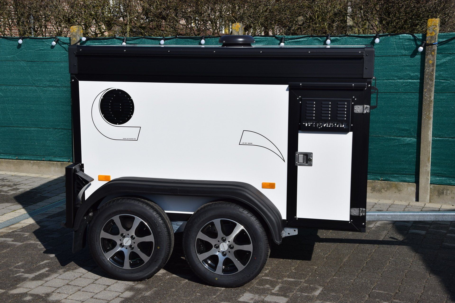 Afgewerkt met een mooi setje aluminium velgen is deze zwarte Campeon aanhanger een pareltje.